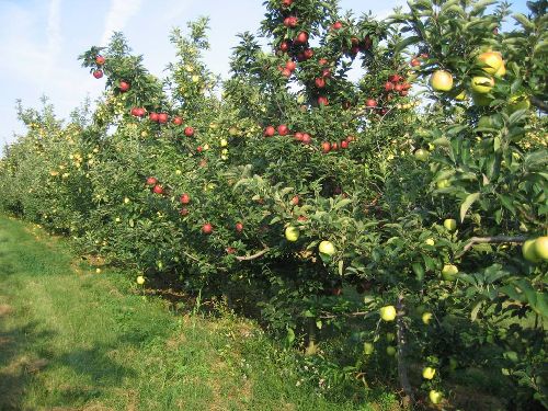 | Description: | Every once in a while, you'll notice a tree that is different from the rest. Apple blossoms pollinate best when there are different varieties in the block. The "pollinator" is very evident in this picture. |