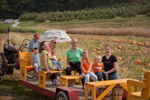 The family out in the pumpkin patch