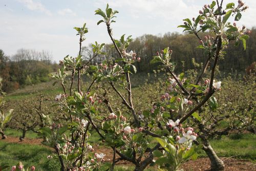 These are pictures of "Rome" in bloom. Notice that they have blooms on the end of regular branches, not fruiting spurs like the Red Delicious.