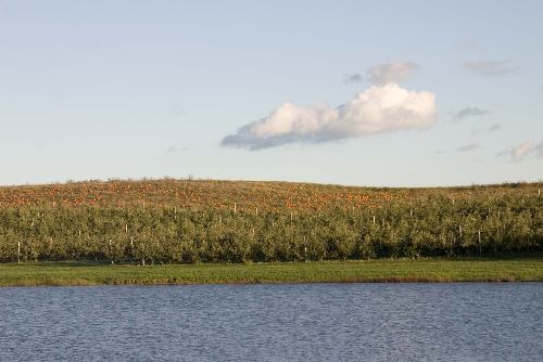 Lots of pumpkins overlooking the big pond.