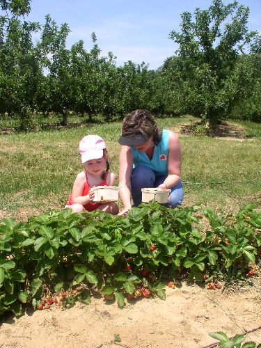 Mommy teaches how to pick the berries when they are red all the way to the tip.